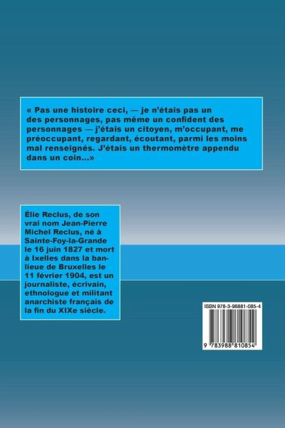 Pas une histoire ceci, - je n'étais pas un des personnages, pas même un confident des personnages - j'étais un citoyen, m'occupant, me préoccupant, regardant, écoutant, parmi les moins mal renseignés. J'étais un thermomètre appendu dans un coin...