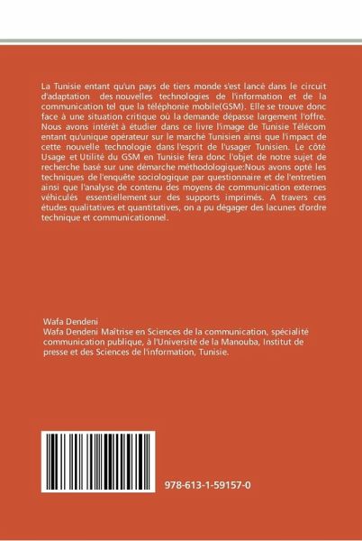 La Tunisie entant qu'un pays de tiers monde s'est lancé dans le circuit d'adaptation des nouvelles technologies de l'information et de la communication tel que la téléphonie mobile(GSM). Elle se trouve donc face à une situation critique où la demande dépasse largement l'offre. Nous avons intérêt à étudier dans ce livre l'image de Tunisie Télécom entant qu'unique opérateur sur le marché Tunisien ainsi que l'impact de cette nouvelle technologie dans l'esprit de l'usager Tunisien. Le côté Usage et Utilité du GSM en Tunisie fera donc l'objet de notre sujet de recherche basé sur une démarche méthodologique:Nous avons opté les techniques de l'enquête sociologique par questionnaire et de l'entretien ainsi que l'analyse de contenu des moyens de communication externes véhiculés essentiellement sur des supports imprimés. A travers ces études qualitatives et quantitatives, on a pu dégager des lacunes d'ordre technique et communicationnel.