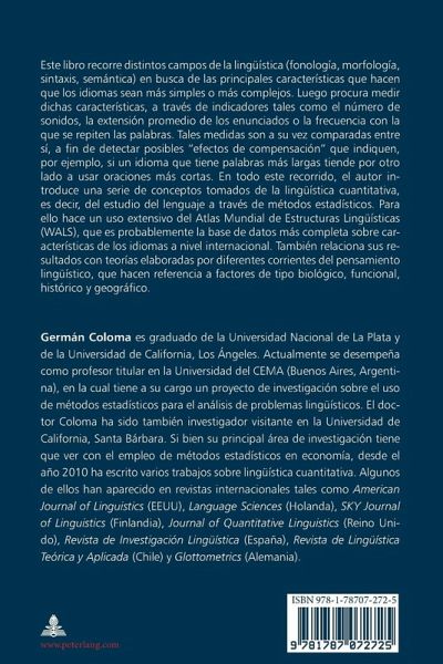 Este libro recorre distintos campos de la lingüística (fonología, morfología, sintaxis, semántica) en busca de las principales características que hacen que los idiomas sean más simples o más complejos. Luego procura medir dichas características, a través de indicadores tales como el número de sonidos, la extensión promedio de los enunciados o la frecuencia con la que se repiten las palabras. Tales medidas son a su vez comparadas entre sí, a fin de detectar posibles "efectos de compensación" que indiquen, por ejemplo, si un idioma que tiene palabras más largas tiende por otro lado a usar oraciones más cortas. En todo este recorrido, el autor introduce una serie de conceptos tomados de la lingüística cuantitativa, es decir, del estudio del lenguaje a través de métodos estadísticos. Para ello hace un uso extensivo del Atlas Mundial de Estructuras Lingüísticas (WALS), que es probablemente la base de datos más completa sobre características de los idiomas a nivel internacional. También relaciona sus resultados con teorías elaboradas por diferentes corrientes del pensamiento lingüístico, que hacen referencia a factores de tipo biológico, funcional, histórico y geográfico.