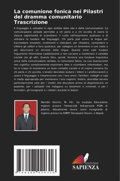 Il linguaggio è utilizzato in ogni ambito della vita e della comunicazione. La comunicazione verbale permette a chi parla e a chi ascolta di avere la stessa opportunità di scambiarsi il ruolo nell'esprimere qualcosa e di utilizzare le funzioni del linguaggio. Chi parla può usare la lingua per trasmettere emozioni, sentimenti e intenzioni, per chiedere, comandare e sfidare gli uditori a fare qualcosa, per spiegare un fenomeno o uno stato o per descrivere un termine della lingua. Queste sono solo funzioni linguistiche informative soddisfacenti e non servono a mantenere il contatto sociale con gli altri. Questo libro, quindi, fornisce una funzione linguistica unica nella comunicazione verbale, la comunione fàtica. La sua espressione non significa semplicemente esprimere idee o scambiare informazioni, ma ha lo scopo di mantenere un buon contatto sociale e di creare armonia tra chi parla e chi ascolta. L'analisi dovrebbe aiutare i lettori e i professionisti a usare il linguaggio o l'espressione con i loro amici, familiari, colleghi o capi in modo appropriato per mantenere i loro rapporti. Inoltre, dovrebbe essere particolarmente utile per i medici che discutono prima di diagnosticare un paziente, per i poliziotti che indagano su testimoni o criminali, e per i formatori, gli insegnanti o i relatori durante le lezioni.
