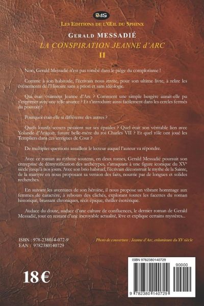 Non, Gerald Messadié n'est pas tombé dans le piège du complotisme ! Comme à son habitude, l'écrivain nous invite, pour son ultime livre, à relire les événements de l'Histoire sans a priori et sans idéologie. Qui était vraiment Jeanne d'Arc ? Comment une simple bergère aurait-elle pu s'exprimer avec une telle aisance ? Et s'introduire aussi facilement dans les cercles fermés du pouvoir ? Pourquoi était-elle si différente des autres ? Quels lourds secrets pesaient sur ses épaules ? Quel était son véritable lien avec Yolande d'Aragon, future belle-mère du roi Charles VII ? Et quel rôle ont joué les Templiers dans ces intrigues de Cour ? De multiples questions assaillent le lecteur auquel l'auteur va répondre. Avec ce roman au rythme soutenu, en deux tomes, Gerald Messadié poursuit son entreprise de démystification des archétypes, s'attaquant à une figure iconique du XVe siècle jusqu'à nos jours. Avec son brio habituel, l'écrivain déconstruit le mythe de la Sainte, de la martyre en nous proposant sa version des faits, nourrie par de longues et solides recherches. En suivant les aventures de son héroïne, il nous propose un vibrant hommage aux femmes de caractère, à rebours des clichés, explorant toutes les facettes du roman historique, brassant chroniques, récit épique, thriller ésotérique. Audace du doute, audace d'une culture de confluences, le dernier roman de Gerald Messadié, tout en restant d'une incroyable actualité, lève et explique certains mystères...