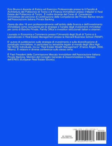 L'obiettivo di questa pubblicazione è la formalizzazione di un quadro organico preliminare di nozioni sul tema della Consulenza Immobiliare nel Private Banking al fine di fornire a quanti interessati a tali tematiche un supporto "iniziale" al corretto approccio a tale attività specialistica di advisory. Il libro è tra i testi adottati nel Corso di Consulenza Immobiliare del Percorso di Certificazione delle Competenze Tecnico-Manageriali tenuto dall'Associazione Italiana Private Banking AIPB. INDICE La Consulenza Immobiliare nel Private Banking Gli High Net Worth Individuals e il Real Estate Immobili come Asset Class La Valutazione Immobiliare Strategic Asset Management Immobiliare Il processo di investimento immobiliare Strumenti innovativi di investimento Fondi Immobiliari Società di Investimento Immobiliare Quotate