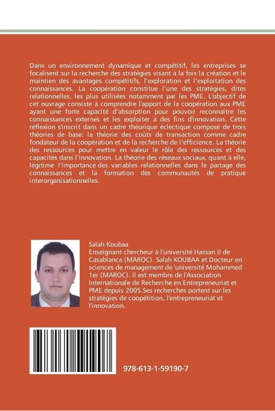 Dans un environnement dynamique et compétitif, les entreprises se focalisent sur la recherche des stratégies visant à la fois la création et le maintien des avantages compétitifs, l'exploration et l'exploitation des connaissances. La coopération constitue l'une des stratégies, dites relationnelles, les plus utilisées notamment par les PME. L'objectif de cet ouvrage consiste à comprendre l'apport de la coopération aux PME ayant une forte capacité d'absorption pour pouvoir reconnaître les connaissances externes et les exploiter à des fins d'innovation. Cette réflexion s'inscrit dans un cadre théorique éclectique composé de trois théories de base: la théorie des coûts de transaction comme cadre fondateur de la coopération et de la recherche de l'efficience. La théorie des ressources pour mettre en valeur le rôle des ressources et des capacités dans l'innovation. La théorie des réseaux sociaux, quant à elle, légitime l'importance des variables relationnelles dans le partage des connaissances et la formation des communautés de pratique interorganisationnelles.