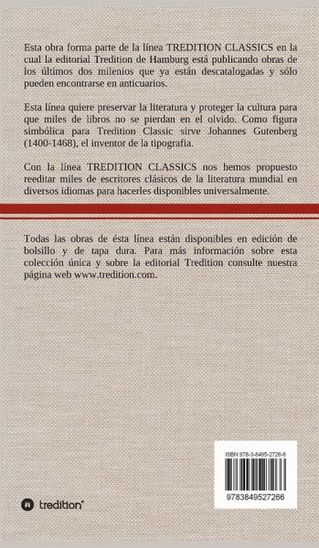 Esta obra (libro de tapa dura) forma parte de la línea TREDITION CLASSICS en la cual la editorial tredition de Hamburgo está publicando obras de los últimos dos milenios que ya están descatalogadas y sólo pueden encontrarse en anticuarios. Esta línea quiere preservar la literatura y proteger la cultura para que miles de libros no se pierdan en el olvido. Con la línea TREDITION CLASSICS nos hemos propuesto reeditar miles de escritores clásicos de la literatura mundial en diversos idiomas para hacerles disponibles universalmente.