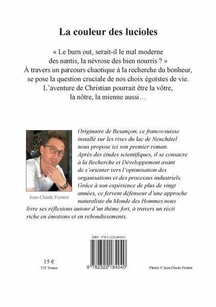 Originaire de Besançon, ce franco-suisse installé sur les rives du lac de Neuchâtel nous propose ici son premier roman. Après des études scientifiques, il se consacre à la Recherche et Développement avant de s'orienter vers l'optimisation des organisations et des processus industriels. Grâce à son expérience de plus de vingt années, ce fervent défenseur d'une approche naturaliste du Monde des Hommes nous livre ses réflexions autour d'un thème fort, à travers un récit riche en émotions et en rebondissements.