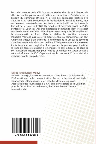 Récit du parcours de la CPI face aux obstacles dressés et à l hypocrisie affichée par les puissances et l attitude - à la fois - d adhésion et de boycott du continent africain. A la tête des puissances hostiles à la Cour, les Etats-Unis contournent la ratification du traité de Rome, tout en détenant paradoxalement les leviers de la juridiction à travers le Conseil de sécurité de l ONU. Ils brandissent aux Etats gagnés à l idée d intégrer la Cour, les Accords bilatéraux d immunité dont l irrespect entraîne le retrait de l aide ; Washington assurant que la CPI empiète sur la souveraineté des Etats. Mais en réalité, la première puissance mondiale n entend pas laisser la Cour étendre sa compétence sur tout Américain, auteur d un crime de la juridiction de la CPI sur le territoire d un Etat partie. A la rédaction du livre, l Afrique compte - à elle seule - trente trois sur cent vingt et un Etats parties. Le premier pays à ratifier le traité de Rome est africain : le Sénégal ; le pays à boucler la série de 60 ratifications nécessaires pour l entrée en vigueur du statut de Rome est aussi africain : la RDC. Cependant, sur le continent, l Union africaine mobilise pour le camp du refus.
