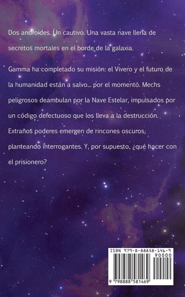 Dos androides. Un cautivo. Una vasta nave llena de secretos mortales en el borde de la galaxia. Gamma ha completado su misión: el Vivero y el futuro de la humanidad están a salvo... por el momento. Mechs peligrosos deambulan por la Nave Estelar, impulsados por un código defectuoso que los lleva a la destrucción. Extraños poderes emergen de rincones oscuros, planteando interrogantes. Y, por supuesto, ¿qué hacer con el prisionero? Mientras Gamma y Delta peinan la nave en busca de respuestas, se encuentran con enemigos nuevos y antiguos, amigos condicionales y un sombrío destino que deben esquivar a toda costa. La secuela de Más Allá del Horizonte Estelar, La Creación Imperfecta es una aventura de ciencia ficción rebosante de acción, tecnología y personajes que nunca antes habías visto. Sumérgete en la trilogía Horizontes Infinitos, con su toque ciberpunk, intensas batallas en un futuro distante y sueños de un mejor porvenir tanto para el hombre como para la máquina.
