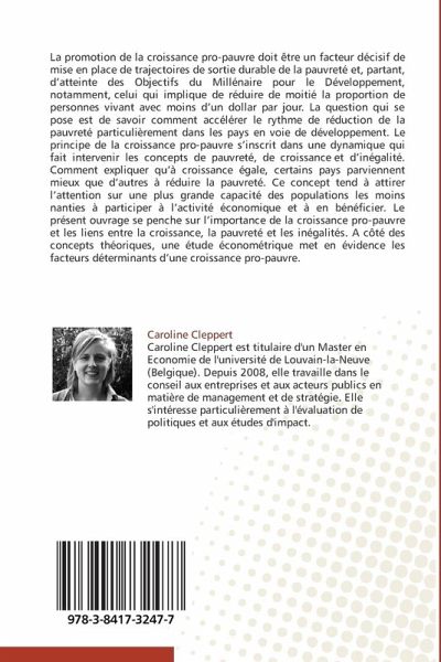 La promotion de la croissance pro-pauvre doit être un facteur décisif de mise en place de trajectoires de sortie durable de la pauvreté et, partant, d'atteinte des Objectifs du Millénaire pour le Développement, notamment, celui qui implique de réduire de moitié la proportion de personnes vivant avec moins d'un dollar par jour. La question qui se pose est de savoir comment accélérer le rythme de réduction de la pauvreté particulièrement dans les pays en voie de développement. Le principe de la croissance pro-pauvre s'inscrit dans une dynamique qui fait intervenir les concepts de pauvreté, de croissance et d'inégalité. Comment expliquer qu'à croissance égale, certains pays parviennent mieux que d'autres à réduire la pauvreté. Ce concept tend à attirer l'attention sur une plus grande capacité des populations les moins nanties à participer à l'activité économique et à en bénéficier. Le présent ouvrage se penche sur l'importance de la croissance pro-pauvre et les liens entre la croissance, la pauvreté et les inégalités. A côté des concepts théoriques, une étude économétrique met en évidence les facteurs déterminants d'une croissance pro-pauvre.