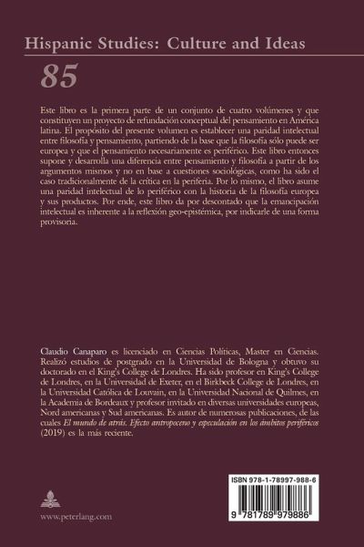 Este libro es la primera parte de un conjunto de cuatro volúmenes y que constituyen un proyecto de refundación conceptual del pensamiento en América latina. El propósito del presente volumen es establecer una paridad intellectual entre filosofía y pensamiento, partiendo de la base que la filosofía sólo puede ser europea y que el pensamiento necesariamente es periférico. Este libro entonces supone y desarrolla una diferencia entre pensamiento y filosofía a partir de los argumentos mismos y no en base a cuestiones sociológicas, como ha sido el caso tradicionalmente de la crítica en la periferia. Por lo mismo, el libro assume una paridad intelectual de lo periférico con la historia de la filosofía europea y sus productos. Por ende, este libro da por descontado que la emancipación intelectual es inherente a la reflexión geo-epistémica, por indicarle de una forma provisoria.