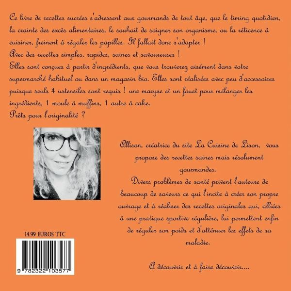 Ce livre de recettes sucrées s'adressent aux gourmands de tout âge, que le timing quotidien, la crainte des excès alimentaires, le souhait de soigner son organisme, ou la réticence à cuisiner, freinent à régaler les papilles. Il fallait donc s'adapter !Avec des recettes simples, rapides, saines et savoureuses !Elles sont conçues à partir d'ingrédients, que vous trouverez aisément dans votre supermarché habituel ou dans un magasin bio, et réalisées avec peu d'accessoires puisque seuls 4 ustensiles sont requis ! Une Maryse et un fouet pour mélanger les ingrédients, 1 moule à muffins, 1 autre à cakes. Prêts pour l'originalité ?