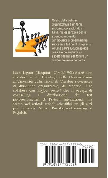 Quello della cultura organizzativa è un tema fondamentale a livello aziendale, in quanto essa concorre in maniera determinante a costituire successi ed insuccessi organizzativi; una cultura inadatta può portare al fallimento di una impresa, così come una cultura ben sviluppata e pensata è essenziale perchè un'azienda raggiunga picchi di eccellenza. In questo volume Laura Liguori spiega in maniera semplice e chiara cosa sia la cultura e perchè sia importante, descrivendola e arricchendo la spiegazione con esempi pratici. Un libro fondamentale per chi si vuole avvicinare al tema o vuole guadagnare su di esso un'efficace visione di insieme.