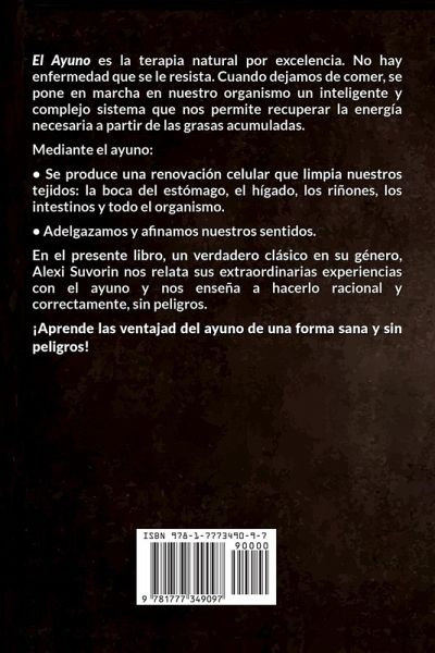 El ayuno es la terapia natural por excelencia. No hay enfermedad que se le resista. Cuando dejamos de comer, se pone en marcha en nuestro organismo un inteligente y complejo sistema que nos permite recuperar la energía necesaria a partir de las grasas acumuladas. Mediante el ayuno: * Se produce una renovación celular que limpia nuestros tejidos: la boca del estómago, el hígado, los riñones, los intestinos y todo el organismo. * Adelgazamos y afinamos nuestros sentidos. En el presente libro, un verdadero clásico en su género, Alexi Suvorin nos relata sus extraordinarias experiencias con el ayuno y nos enseña a hacerlo racional y correctamente, sin peligros. CONTENIDOS: La curación por el ayuno Hechos y casos Observaciones referentes al transcurso del ayuno como método de purificación Curso abreviado del ayuno purificador ¡Aprende las ventajad del ayuno de una forma sana y sin peligros!