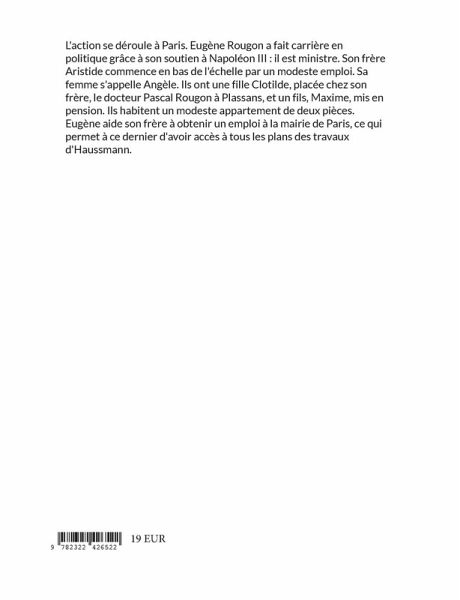 L'action se déroule à Paris. Eugène Rougon a fait carrière en politique grâce à son soutien à Napoléon III : il est ministre. Son frère Aristide commence en bas de l'échelle par un modeste emploi. Sa femme s'appelle Angèle. Ils ont une fille Clotilde, placée chez son frère, le docteur Pascal Rougon à Plassans, et un fils, Maxime, mis en pension. Ils habitent un modeste appartement de deux pièces. Eugène aide son frère à obtenir un emploi à la mairie de Paris, ce qui permet à ce dernier d'avoir accès à tous les plans des travaux d'Haussmann.