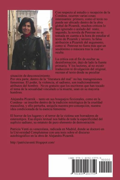 Este texto en prosa de Alejandra Pizarnik (1936-1972) gira en torno a un personaje mitificado a través del arte y la literatura: la condesa húngara Erzébet Báthory, quien asesinó y torturó en su castillo a aproximadamente 650 muchachas, los métodos de tortura están detallados en el libro de la Pizarnik con una belleza y un detalle asombrosos.La máscara-Bathory oculta a Alejandra, personaje de su propia obra, que se funde y se confunde con la víctima y su sangre, la palabra y el silencio. El libro de La condesa sangrienta debe ser entendido como un texto autobiográfico en relación con el erotismo, la violencia, el exilio, la muerte, lo obsceno, y lo traumático infantil. La reiteración del silencio alude a la autocensura que le impide enunciar aquello que será la mirada y al mismo tiempo, la voz de la desolada que la llevará a lo "oscuro".