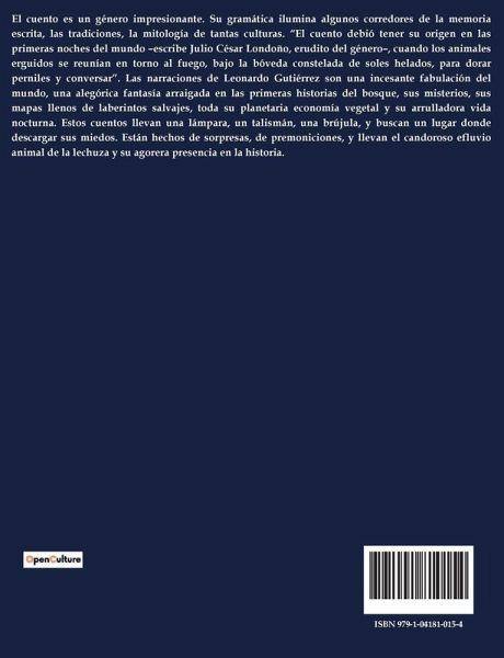 El cuento es un género impresionante. Su gramática ilumina algunos corredores de la memoria escrita, las tradiciones, la mitología de tantas culturas. ¿El cuento debió tener su origen en las primeras noches del mundo ¿escribe Julio César Londoño, erudito del génerö, cuando los animales erguidos se reunían en torno al fuego, bajo la bóveda constelada de soles helados, para dorar perniles y conversar¿. Las narraciones de Leonardo Gutiérrez son una incesante fabulación del mundo, una alegórica fantasía arraigada en las primeras historias del bosque, sus misterios, sus mapas llenos de laberintos salvajes, toda su planetaria economía vegetal y su arrulladora vida nocturna. Estos cuentos llevan una lámpara, un talismán, una brújula, y buscan un lugar donde descargar sus miedos. Están hechos de sorpresas, de premoniciones, y llevan el candoroso efluvio animal de la lechuza y su agorera presencia en la historia.