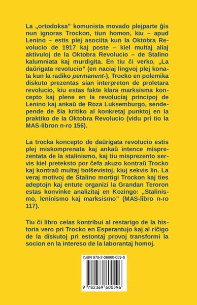 "La teorio de la socialismo en unu lando estis unue formulita en la ätuno de 1924 de Stalino, en kompleta konträeco ne nur al la tradicioj de la marksismo kaj de la skolo de Lenino, sed ankä al tio, kion Stalino ankorä en la printempo de la sama jaro 1924 estis skribinta. La profundo de la forlaso de la marksismo, kiun la stalina „skolo" faras en la demandoj de la socialisma konstruado estas en principa rilato ne malpli grava kaj radikala ol ekz-e la rompo de la germanaj socialdemokratoj kun la marksismo en demandoj de la milito kaj de la patriotismo en ägusto de 1914, t.e. precize dek jarojn antä la stalina ¿an¿ego. Tiu komparo ne estas hazarda. La „eraro" de Stalino kaj la „eraro" de la germanaj socialdemokratoj signifas: nacisocialismon." (Leo Trocko) En tiu ¿i libro Leo Trocko klarigas sian koncepton de "därigata revolucio" en polemika diskuto kun siaj kritikantoj, ¿efe Stalino, kaj ¿i-kaze Karlo Radeko. Trocko klarigas ¿i tie ne nur sian - la marksan - koncepton de la proletara revolucio, sed krome la sendialektikan kaj nemarksisman kaj lastinstance kontraurevolucian strategion kaj taktikon de Stalino kaj ties favoratoj.