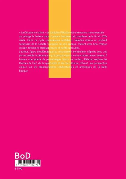 « La Décadence latine » de Joséphin Péladan est une oeuvre monumentale qui plonge le lecteur dans l'univers fascinant et complexe de la fin du XIXe siècle. Dans ce cycle romanesque ambitieux, Péladan dresse un portrait saisissant de la société française de son époque, mêlant avec brio critique sociale, réflexions philosophiques et quête spirituelle. L'auteur, figure emblématique du mouvement symboliste, dépeint avec une plume acérée la décadence qu'il perçoit dans la culture latine de son temps. À travers une galerie de personnages hauts en couleur, Péladan explore les thèmes de l'art, de la spiritualité et de l'occultisme, offrant une perspective unique sur les préoccupations intellectuelles et artistiques de la Belle Époque. Ce livre s'inscrit naturellement dans les rayons de littérature française classique, d'ésotérisme et d'histoire culturelle. Péladan y démontre sa maîtrise du style symboliste, créant une oeuvre dense et riche en symboles qui continue de fasciner les lecteurs contemporains. « La Décadence latine » n'est pas qu'un simple roman. C'est une fresque ambitieuse qui interroge la place de l'art et de la spiritualité dans une société en pleine mutation. Péladan, à travers son alter ego littéraire Mérodack, propose une vision alternative à la décadence qu'il observe, prônant un retour aux valeurs esthétiques et spirituelles comme remède aux maux de son époque. L'oeuvre est imprégnée des connaissances ésotériques de Péladan, notamment son intérêt pour la Rose-Croix et l'occultisme. Ces éléments ajoutent une dimension mystique au récit, créant un univers littéraire unique où se mêlent réalisme social et quête initiatique. « La Décadence latine » reste un témoignage précieux de la pensée fin-de-siècle, offrant un regard critique et visionnaire sur une époque charnière de l'histoire culturelle française. L'oeuvre de Péladan, longtemps méconnue, connaît aujourd'hui un regain d'intérêt, tant pour sa valeur littéraire que pour sa pertinence dans l'étude du symbolisme et de l'ésotérisme occidental.