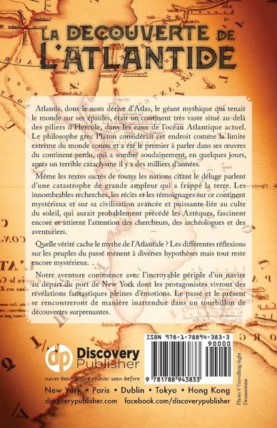 Atlantis, dont le nom dérive d'Atlas, le géant mythique qui tenait le monde sur ses épaules, était un continent très vaste situé au-delà des piliers d'Hercule, dans les eaux de l'océan Atlantique actuel. Le philosophe grec Platon considérait cet endroit comme la limite extrême du monde connu et a été le premier à parler dans ses œuvres du continent perdu, qui a sombré soudainement, en quelques jours, après un terrible cataclysme il y a des milliers d'années. Même les textes sacrés de toutes les nations citant le déluge parlent d'une catastrophe de grande ampleur qui a frappé la terre. Les innombrables recherches, les récits et les témoignages sur ce continent mystérieux et sur sa civilisation avancée et puissante liée au culte du soleil, qui aurait probablement précédé les Aztèques, fascinent encore et attirent l'attention des chercheurs, des archéologues et des aventuriers. Quelle vérité cache le mythe de l'Atlantide ? Les différentes réflexions sur les peuples du passé mènent à diverses hypothèses, mais tout reste encore mystérieux. Notre aventure commence avec l'incroyable périple d'un navire au départ du port de New York dont les protagonistes vivront des révélations fantastiques pleines d'émotions. Le passé et le présent se rencontreront de manière inattendue dans un tourbillon de découvertes surprenantes. Note de l'éditeur: Afin d'être plus agréable lors de la lecture, cet ouvrage est au format Beau Livre, 5.5"x8.5", 14x22cm. Dans la même optique, le papier est de couleur crème, ce qui fatigue moins les yeux que le papier blanc. Toutes nos publications font l'objet d'un travail soigné tant au niveau typographique qu'au niveau du design. 152 pages.