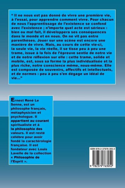 " Si l'un objectif était la fin de nos visées, on ne pourrait que n'y pas être ou y être, car cet un exclut le degré, comme le point est sans parties. Entre la mort dans l'un et l'anéantissement hors de l'un, il n'y aurait pas de vie. Je suis et vis. En tant que j'existe, je dois participer de l'un ; en tant que je désire n'y réussir qu'en partie, je ne dois pas l'épuiser immédiatement ni jamais. Donc l'un comporte la multiplicité du degré, comme tout autre ; et, puisque l'un d'un moi est le seul à permettre une multiplicité en soi, l'un suprême est une personne et doit être appelé Dieu..."