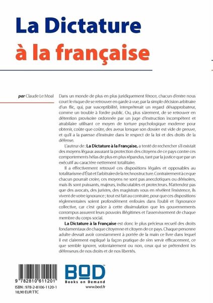 Dans un monde de plus en plus juridiquement féroce, chacun d'entre nous court le risque de se retrouver en garde à vue, par la simple décision arbitraire d'un flic, qui, par susceptibilité, interpréterait un regard désapprobateur, comme un trouble àl'ordre public. Ou, plus sûrement, de se retrouver en détention provisoire ordonnée par un juge d'instruction incompétent et atrabilaire utilisant ce moyen de torture psychologique moderne pour obtenir, coûte que coûte, des aveux lorsque sondossier est vide de preuve, et qu'il a la paresse d'instruire dans le respect de la loi et des droits de la défense.L'auteur de : La Dictature à la Française, a tenté de rechercher s'il existait des moyens légaux assurant la protection des citoyens de ce pays contre ces comportements hélas de plus en plus répandus, tant par la justice que par unexécutif au caractère nettement totalitaire.Il a effectivement retrouvé ces dispositions légales et opposables au totalitarisme d'État et l'arbitraire de la technostructure. Contrairement à ce que chacun pourrait croire, ces moyens ne sont pas anecdotiques ou dérisoires, mais ils sont puissants, majeurs, indiscutables et protecteurs. N'attendez pas que des avocats, des juristes, des magistrats vous en révèlent l'existence, ils vivent de votre ignorance ; toutest fait au contraire, pour que ces dispositions réglementaires soient profondément enfouies dans l'oubli et l'ignorance collective, car c'est grâce à cette dissimulation que les gouvernements corrompus assurent leurs pouvoirs illégitimes et l'asservissement de chaque membre du corps social.La Dictature à la Française est donc le plus précieux recueil des droits fondamentaux de chaque citoyenne et citoyen de ce pays. Chaque personne adulte devrait avoir constamment à portée de la main ce livre dans lequel il est clairement expliqué la façon pratique de s'en servir efficacement, ce que semble ignorer, volontairement ou non, ceux qui se prétendent les défenseurs de nos droits et de nos libertés.