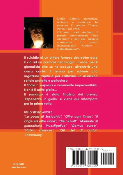 Il suicidio di un pittore famoso dovrebbe dare il via ad un normale necrologio. Invece, per il giornalista che se ne occupa, diventerà un corsa contro il tempo per salvare una ragazzina rapita e per catturare un assassino seriale protetto e pericoloso. Il finale a sorpresa è veramente imprevedibile. Non è il solito giallo... Il romanzo è stato finalista del premio "Esperienze in giallo" e viene qui ristampato per la prima volta. (EDIZIONE ECONOMICA)