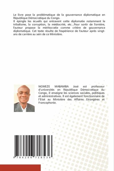 Le livre pose la problématique de la gouvernance diplomatique en République Démocratique du Congo.Il épingle les écueils qui entravent cette diplomatie notamment le tribalisme, la corruption, la médiocrité, etc...Pour sortir de l'ornière, l'auteur propose la méritocratie comme critère de gouvernance diplomatique. Cet texte résulte de l'expérience de l'auteur après vingt-ans de carrière au sein de ce Ministère.