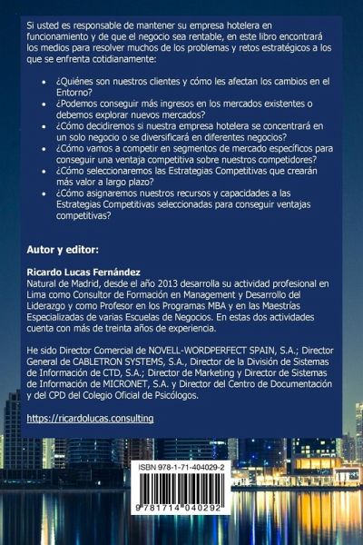 Si usted es responsable de mantener su empresa hotelera en funcionamiento y de que el negocio sea rentable, en este libro encontrará los medios para resolver muchos de los problemas y retos estratégicos a los que se enfrenta cotidianamente: ¿Quiénes son nuestros clientes y cómo les afectan los cambios en el Entorno? ¿Podemos conseguir más ingresos en los mercados existentes o debemos explorar nuevos mercados? ¿Cómo decidiremos si nuestra empresa hotelera se concentrará en un solo negocio o se diversificará en diferentes negocios? ¿Cómo vamos a competir en segmentos de mercado específicos para conseguir una ventaja competitiva sobre nuestros competidores? ¿Cómo seleccionaremos las Estrategias Competitivas que crearán más valor a largo plazo? ¿Cómo asignaremos nuestros recursos y capacidades a las Estrategias Competitivas seleccionadas para conseguir ventajas competitivas? Este libro contiene la información y los conocimientos indispensables para: ¿ Utilizar los modelos, las herramientas y las técnicas más adecuados para el análisis y el diagnóstico de las tendencias y los retos estratégicos actuales y futuros del sector hotelero, y para la formulación de estrategias competitivas sostenibles a largo plazo. ¿ Desarrollar las competencias y habilidades que les permitirán pensar de manera estratégica sobre la formulación y la ejecución de estrategias que creen valor y ventajas competitivas para su empresa hotelera. ¿ Aplicar las herramientas de análisis y toma de decisiones estratégicas a su propio hotel, para mejorar su posicionamiento competitivo. ¿ Adquirir los conocimientos y ejercitar las competencias necesarias para asumir posiciones de liderazgo en su empresa hotelera. ¿ Comprender los conceptos e ideas clave de la Dirección Estratégica, a partir del estudio de casos de empresas del sector hotelero.
