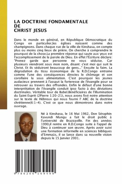 Dans le monde en général, en République Démocratique du Congo en particulier,les églises naissent comme des champignons. Dans chaque rue de la ville de Kinshasa, on compte plus ou moins cinq lieux de prière. On cherche à comprendre le pourquoi de la chose.La première réponse qui saute aux yeux est l'accomplissement de la parole de Dieu. En effet l'Écriture déclare: "Prenez garde que personne ne vous séduise. Car plusieurs viendront sous mon nom, disant: c'est moi qui suit le Christ. Et ils séduiront beaucoup de gens..." Ensuite la faim. La dégradation du tissu économique de la R.D.Congo entraine comme l'une des conséquences directes le chômage et son corollaire la sous alimentation. C'est pourquoi les jeunes audacieux prennent à l'assaut la forteresse de l'évangile pour se retrouver au travers des offrandes. Enfin le défaut d'une bonne interprétation de l'évangile conduit ipso facto à des déviations doctrinales. Véritable tour de Babel.Bénéficiaires de l'illumination du Saint Esprit (2Pierre 1:20-21), nous avons fixé notre attention sur le texte de Hébreux qui nous fourni l' ABC de la doctrine chrétienne(6:1-4). C'est ce que nous démontrons dans notre ouvrage.