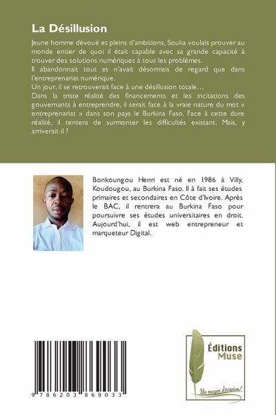 Jeune homme dévoué et pleins d'ambitions, Souka voulais prouver au monde entier de quoi il était capable avec sa grande capacité à trouver des solutions numériques à tous les problèmes.Il abandonnait tout et n'avait désormais de regard que dans l'entreprenariat numérique.Un jour, il se retrouverait face à une désillusion totale...Dans la triste réalité des financements et les incitations des gouvernants à entreprendre, il serait face à la vraie nature du mot « entreprenariat » dans son pays le Burkina Faso. Face à cette dure réalité, il tentera de surmonter les difficultés existant. Mais, y arriverait-il ?