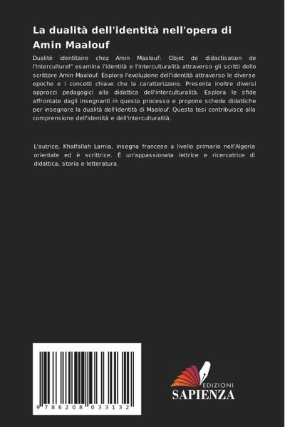 Dualité identitaire chez Amin Maalouf: Objet de didactisation de l'interculturel" esamina l'identità e l'interculturalità attraverso gli scritti dello scrittore Amin Maalouf. Esplora l'evoluzione dell'identità attraverso le diverse epoche e i concetti chiave che la caratterizzano. Presenta inoltre diversi approcci pedagogici alla didattica dell'interculturalità. Esplora le sfide affrontate dagli insegnanti in questo processo e propone schede didattiche per insegnare la dualità dell'identità di Maalouf. Questa tesi contribuisce alla comprensione dell'identità e dell'interculturalità.