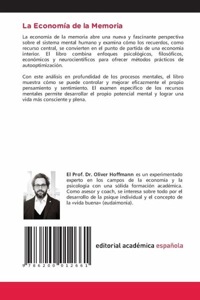 La economía de la memoria abre una nueva y fascinante perspectiva sobre el sistema mental humano y examina cómo los recuerdos, como recurso central, se convierten en el punto de partida de una economía interior. El libro combina enfoques psicológicos, filosóficos, económicos y neurocientíficos para ofrecer métodos prácticos de autooptimización.Con este análisis en profundidad de los procesos mentales, el libro muestra cómo se puede controlar y mejorar eficazmente el propio pensamiento y sentimiento. El examen específico de los recursos mentales permite desarrollar el propio potencial mental y lograr una vida más consciente y plena.