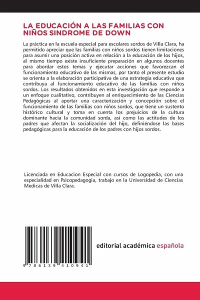 La práctica en la escuela especial para escolares sordos de Villa Clara, ha permitido apreciar que las familias con niños sordos tienen limitaciones para asumir una posición activa en relación a la educación de los hijos, al mismo tiempo existe insuficiente preparación en algunos docentes para abordar estos temas y ejecutar acciones que favorezcan el funcionamiento educativo de las mismas, por tanto el presente estudio se orienta a la elaboración participativa de una estrategia educativa que contribuya al funcionamiento educativo de las familias con niños sordos. Los resultados obtenidos en esta investigación que responde a un enfoque cualitativo, contribuyen al enriquecimiento de las Ciencias Pedagógicas al aportar una caracterización y concepción sobre el funcionamiento de las familias con niños sordos, que tiene un sustento histórico cultural y toma en cuenta los prejuicios de la cultura dominante hacia la comunidad sorda, así como las actitudes de los padres que afectan la socialización del hijo, definiéndose las bases pedagógicas para la educación de los padres con hijos sordos.