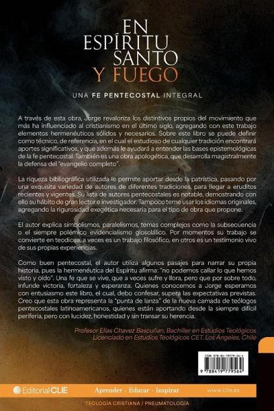 En Esp¿¿ritu Santo y fuego es una obra exhaustiva escrita por Jorge Canto Encalada que sumerge al lector en el rico mundo teol¿¿gico del movimiento pentecostal. Este libro, fruto del profundo compromiso del autor con su tradici¿¿n, ofrece una exploraci¿¿n detallada y perspicaz de temas fundamentales para el pentecostalismo, como el bautismo del Esp¿¿ritu Santo, la gracia preveniente y la pneumatolog¿¿a. Con un enfoque acad¿¿mico s¿¿lido y una pasi¿¿n palpable por su tema, Canto Encalada aborda tanto las doctrinas cl¿¿sicas como las tendencias contempor¿¿neas dentro del pentecostalismo, en especial en Am¿¿rica Latina. Este libro ofrece una exploraci¿¿n profunda y ¿¿nica de la teolog¿¿a del Esp¿¿ritu Santo, destac¿¿ndose por: Incorporar voces desde los Padres de la Iglesia hasta la erudici¿¿n contempor¿¿nea Incluir informaci¿¿n pertinente tanto de la teolog¿¿a medieval como de la Reforma protestante Extensa investigaci¿¿n bibliogr¿¿fica cuidadosa Hacer un an¿¿lisis teol¿¿gico riguroso Ayudar a entender las complejidades de la doctrina pentecostal Ofrecer una visi¿¿n equilibrada y completa de la experiencia del Esp¿¿ritu Santo Descubre un libro con una valiosa contribuci¿¿n al estudio acad¿¿mico del pentecostalismo, que tambi¿¿n sirve como recurso pr¿¿ctico para pastores, l¿¿deres y estudiantes de teolog¿¿a interesados en profundizar su comprensi¿¿n de la obra del Esp¿¿ritu Santo en la vida y la misi¿¿n de la iglesia. Con su estilo claro y accesible, En Esp¿¿ritu Santo y fuegoinvita a los lectores a reflexionar sobre su propia experiencia espiritual y a explorar las riquezas de la tradici¿¿n pentecostal en el contexto contempor¿¿neo. Es una obra imprescindible para aquellos que deseen comprender mejor el papel central del Esp¿¿ritu Santo en la fe y la pr¿¿ctica pentecostal, y para quienes buscan enriquecer su conocimiento teol¿¿gico con una perspectiva informada y comprometida con la tradici¿¿n pentecostal. Con su combinaci¿¿n de erudici¿¿n teol¿¿gica y pasi¿¿n por la experiencia espiritual, En Esp¿¿ritu Santo y fuego se posiciona como una obra de referencia indispensable en el campo de la pneumatolog¿¿a pentecostal. In the Spirit and in Fire In the Spirit and in Fire is a comprehensive work authored by Jorge Canto Encalada that immerses readers in the rich theological world of the Pentecostal movement. This book, a testament to the author's deep commitment to his tradition, offers a detailed and insightful exploration of foundational themes for Pentecostalism, such as the baptism of the Holy Spirit, prevenient grace, and pneumatology. With a solid academic approach and a palpable passion for his subject, Encalada addresses both classical doctrines and contemporary trends within Pentecostalism, especially in Latin America. This book provides a deep and unique exploration of the theology of the Holy Spirit, noted for: Incorporating voices from the Church Fathers to contemporary scholarship Inclusion of pertinent information on medieval theology as well as the Protestant Reformation Extensive careful bibliographic research Rigorous theological analysis Guiding through the complexities of Pentecostal doctrine Offering a balanced and comprehensive view of the Holy Spirit experience