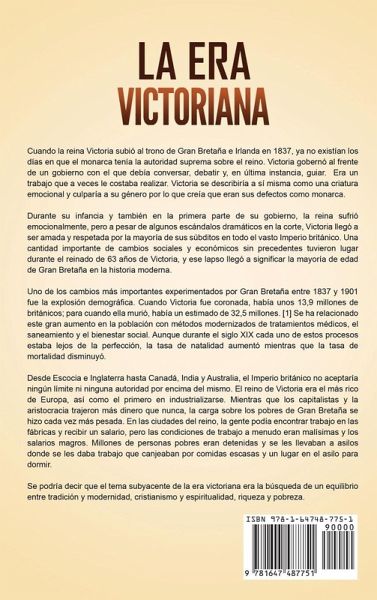 Si quiere descubrir la fascinante historia de la era victoriana, siga leyendo... Cuando la reina Victoria subió al trono de Gran Bretaña e Irlanda en 1837, ya no existían los días en que el monarca tenía la autoridad suprema sobre el reino. Victoria gobernó al frente de un gobierno con el que debía conversar, debatir y, en última instancia, guiar, y era un trabajo que a veces le costaba realizar. Victoria se describiría a sí misma como una criatura emocional y culparía a su género por lo que creía que eran sus defectos como monarca. La reina sufrió emocionalmente durante su infancia y también durante la primera parte de su gobierno, pero a pesar de algunos escándalos dramáticos en la corte, Victoria llegó a ser amada y respetada por la mayoría de sus súbditos en todo el vasto Imperio británico. Un número de importantes cambios sociales y económicos sin precedentes ocurrieron durante el reinado de 63 años de Victoria, y ese lapso ha llegado a significar la mayoría de edad de Gran Bretaña en la historia moderna. Uno de los cambios más importantes experimentados por Gran Bretaña entre 1837 y 1901 fue la explosión demográfica. Cuando Victoria fue coronada, había unos 13,9 millones de británicos; para cuando ella murió, había un estimado de 32,5 millones. Se ha relacionado ese fuerte aumento con métodos modernizados de tratamiento médico, saneamiento y bienestar social, pero durante el siglo XIX cada una de esas industrias estuvo lejos de la perfección. Sin embargo, la tasa de natalidad aumentó y la tasa de mortalidad disminuyó. En La Era Victoriana: Una Fascinante Guía de la Vida de la Reina Victoria y Una Era en La Historia Del Reino Unido Conocida por su Orden Social Basado en La Jerarquía, descubrirá temas como:Una Heredera Inesperada El Acceso Un palacio, un novio y dos escándalos Ratas, pulgas y otras plagas victorianas La epidemia de cólera de 1846-1860 La Revolución del Saneamiento Una Reina de Luto Anatomía, Medicina y Ladrones de Cuerpos Frankenstein, Horror y Ciencia Ficción Egipto, el racismo científico y el canal de Suez Cultos y la Iglesia de Inglaterra Una Carta de China La Revolución Industrial Desamparo y Pobreza Espíritus Victorianos y Espiritualidad Una Navidad Victoriana Los Victorianos en la Evolución Locura, Histeria y Masturbación Emperatriz de la India Jack el Destripador El Siglo 20 ¡Y mucho, mucho más! ¡Obtenga este libro ahora para saber más sobre la era victoriana!