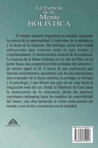 La Esencia de la Mente HolísticaUna Inmersión en la Unidad de la ExistenciaPor Liam MooreEl mundo moderno fragmenta la realidad, separando la ciencia de la espiritualidad, el individuo de la naturaleza y la razón de la intuición. Sin embargo, existe una verdad subyacente que conecta todo lo que somos y experimentamos: la interconexión esencial de la existencia. La Esencia de la Mente Holística no es solo un libro; es un portal hacia una comprensión más profunda del universo y de nuestro papel en él.A través de una exploración que fusiona conocimientos ancestrales con los descubrimientos más avanzados de la física cuántica, la ecología, la biología y la psicología, Liam Moore nos guía en un viaje hacia la integración total del ser. Desde la Hipótesis de Gaia hasta la neurociencia de la conciencia, desde las prácticas espirituales milenarias hasta los modelos de sostenibilidad del futuro, esta obra desmonta la visión reduccionista del mundo y nos invita a reconectar con la totalidad.Aquí, cada capítulo es una revelación: el holismo como una clave para la prosperidad, la medicina integrativa como camino hacia la salud plena, la educación como un puente para la evolución de la humanidad. No se trata solo de entender, sino de experimentar una nueva forma de percibir la vida, una en la que cada pensamiento, cada acción y cada elección resuena en la red invisible que nos une a todo lo que existe.Descubre el conocimiento que trasciende barreras. Despierta la mente holística que siempre ha estado dentro de ti.
