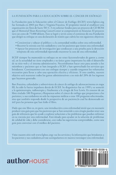 La Fundación para la Educación sobre el Cáncer de Esófago (ECEF) www.fightec.org fue formada en 2003 por Bart y Virginia Frazzitta. El propósito inicial al establecer esta organización sin fines de lucro 501 C 3 era solicitar fondos para un proyecto de CD ROM que el Memorial Sloan-Kettering CancerCenter se comprometió en financiar. El proyecto tuvo un costo de 75.000 dólares. Esto se logró y sirvió como el comienzo de esta Fundación que dirigió su enfoque en una declaración de misión que cubría los tres siguientes objetivos: ¿ Concientizar y educar al público y a la comunidad médica sobre esta enfermedad. ¿ Recorrer la travesía con los cuidadores y con los pacientes que tienen esta enfermedad. ¿ Apoyar los proyectos de investigación que conduzcan a una prueba para la detección temprana de esta enfermedad esperando encontrar la cura de esta enfermedad. ECEF siempre ha mantenido su enfoque en no tener factoreselevados de gastos y, como tal, en la actualidad no tiene empleados y su único gasto importante ha sido el desarrollo de su sitio web y el sistema administrativo. Necesitábamos hacer esto para atender a los miembros y pacientes que se han integrado a ECEF y han aprovechado los servicios que brindamos. Continuaremos con este enfoque siempre y cuando tengamos los voluntarios necesarios para llevar a cabo una operación efectiva y eficiente. Si esto cambia, nuestro objetivo será mantener todos los gastos administrativos a no más del 20% de los ingresos que hayamos generado.