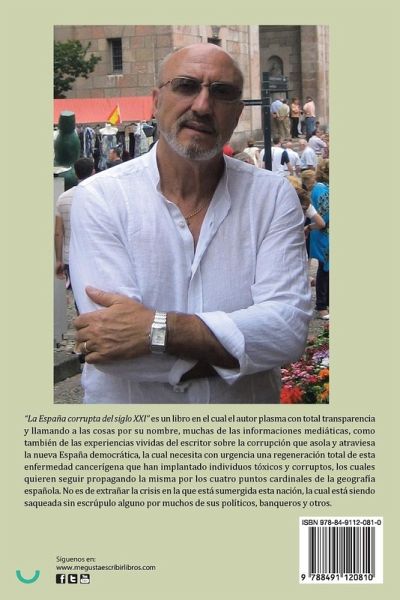 "La España corrupta del siglo XXI" es un libro en el cual el autor plasma con total transparencia y llamando a las cosas por su nombre, muchas de las informaciones mediáticas, como también de las experiencias vividas del escritor sobre la corrupción que asola y atraviesa la nueva España democrática, la cual necesita con urgencia una regeneración total de esta enfermedad cancerígena que han implantado individuos tóxicos y corruptos, los cuales quieren seguir propagando la misma por los cuatro puntos cardinales de la geografía española. No es de extrañar la crisis en la que está sumergida esta nación, la cual está siendo saqueada sin escrúpulo alguno por muchos de sus políticos, banqueros y otros.