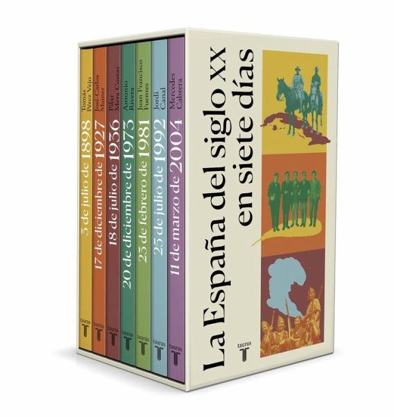 La presente edición de lujo en estuche reúne los siete volúmenes de la colección 'La España del siglo XX en siete días'. Siete libros para siete fechas clave de nuestra historia. Porque no todos los días son iguales. Solemos abordar la historia a partir de arcos de tiempo dilatados. Pero ¿qué sucede si, por una vez, centramos la atención en los instantes concretos que más han marcado nuestro pasado colectivo? Los protagonistas, sus acciones, sus emociones, sus deseos, sus dudas y sus errores pasan al centro del relato, irrumpen con la fuerza de la imprevisibilidad, y los revivimos como si fuera la primera vez. En esta novedosa colección, algunos de los mejores historiadores nos muestran que nada puede darse por sentado, y cómo ciertos acontecimientos pueden dejar un rastro profundo en un país. Reseñas: 'Una serie para tener muy en cuenta.' Manuel Rodríguez Rivero, Babelia 'Una historia en la que los protagonistas son las personas, los individuos y no tanto la abrumadora y fría erudición de los hechos y los datos.' Fernando Prieto Arellano, La Vanguardia