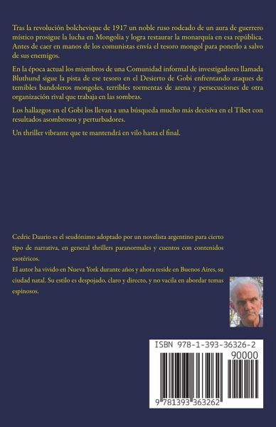 Tras la revolución bolchevique de 1917 un noble ruso rodeado de un aura de guerrero místico prosigue la lucha en Mongolia y logra restaurar la monarquía en esa república. Antes de caer en manos de los comunistas envía el tesoro mongol para ponerlo a salvo de sus enemigos. En la época actual los miembros de una Comunidad informal de investigadores llamada Bluthund sigue la pista de ese tesoro en el Desierto de Gobi enfrentando ataques de temibles bandoleros mongoles, terribles tormentas de arena y persecuciones de otra organización rival que trabaja en las sombras. Los hallazgos en el Gobi los llevan a una búsqueda mucho más decisiva en el Tíbet con resultados asombrosos y perturbadores. Un thriller vibrante que te mantendrá en vilo hasta el final.
