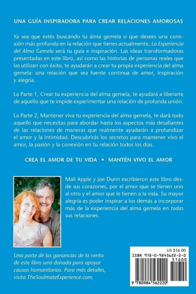 Soltero, en una relación o casado: las personas de todos los ámbitos de la vida, y de todas las edades, consideran que este nuevo libro sobre relaciones iluminadas es inspirador, accesible y verdaderamente transformador. Esta guía revolucionaria te ayudará a crear y mantener una relación íntimamente conectada en todos los niveles -emocional, intelectual, sexual y espiritual- y que es una fuente constante de amor, inspiración y alegría. En la Parte 1, capítulos como "Amar tu cuerpo", "Aligerar tu equipaje", y "Aumentar tu potencial de alma gemela" te ayudará a liberar aquello que esté impidiendo que experimentes una relación de profunda unión. A medida que leas, rápidamente comenzarás a sentir más amor y compasión hacia ti mismo, mayor conexión con los que te rodean y más confianza para crear tu propia experiencia del alma gemela. En la Parte 2, los capítulos como "Crear un contexto", "Convertir las expectativas en invitaciones", "Transformar la energía de los celos", "Explorar los límites" y "Conectarse a nivel del alma" te darán todo lo que necesitas para abordar incluso los aspectos más desafiantes de las relaciones de maneras que profundizarán el amor y la intimidad en tu experiencia. Descubrirás el secreto para mantener vivo el amor, la pasión y la conexión en tu relación todos los días. También aprenderán cómo guiarse mutuamente con amor para liberar las creencias restrictivas, sanar las heridas del pasado, superar las limitaciones percibidas y desatar el potencial en cada área de sus vidas. Ya sea que estés buscando a tu alma gemela, una conexión más profunda en tu relación actual o que simplemente desees experimentar mucho más amor en tu vida, las ideas innovadoras que contiene este libro -así como las historias de las muchas personas reales que las utilizan con éxito- te llenarán de amor, inspiración y posibilidades. Porque La Experiencia del Alma Gemela no es tan solo un libro; es una manera maravillosa de vivir la vida.