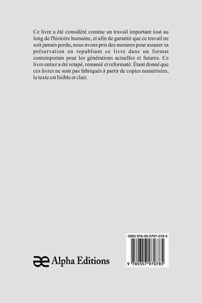 La fabrique de mariages (Volume 3), un livre classique et rare qui a été considéré comme essentiel tout au long de l'histoire de l'humanité, pour que cet ouvrage ne soit jamais oublié, nous chez Alpha Editions avons fait des efforts pour sa préservation en rééditant ce livre dans un format moderne pour les générations présentes et futures. Tout ce livre a été reformaté, retapé et conçu. Ces livres ne sont pas constitués de copies numérisées de leur ¿uvre originale et le texte est donc clair et lisible.