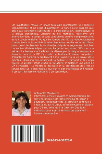 Les insuffisants rénaux en phase terminale représentent une clientèle incompressible et ne cesse d'augmenter. La survie n'est possible que grâce aux traitements substitutifs : la transplantation, l'hémodialyse et la dialyse péritonéale. Chacune de ces méthodes représente une alternative dans le temps et sont considérées comme complémentaires et non concurrentielles. Vu que Le nombre des IRC au monde augmente constamment et le nombre de transplantations rénales reste insuffisant pour couvrir les besoins, le nombre des dialysés va augmenter. Au Liban Les centres d'hémodialyse sont surchargés et les postes d'HD sont vite saturés. La tendance actuelle est de développer la dialyse autonome à domicile comme la DP. Ce mode de traitement permet au patient d'adapter les horaires de traitement à son travail et à sa vie privée, de le maintenir dans son environnement lui évitant le transport et les longs trajets. Le présent projet étudie la faisabilité d'implanter une unité de DP à l'hôpital. Il a montré la nécessité et la profitabilité de créer ce service tant sur le plan médical que sur le plan stratégique et financier. Il est aussi facilement réalisable, à un coût réduit.