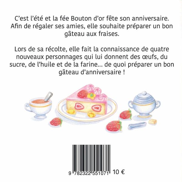 C'est l'été et fée Bouton d'Or fête son anniversaire. Afin de régaler ses amies, elle souhaite préparer un bon gâteau aux fraises. Lors de sa récolte, elle fait la connaissance de quatre nouveaux personnages qui lui donnent des oeufs, du sucre, de l'huile et de la farine... de quoi préparer un bon gâteau d'anniversaire !