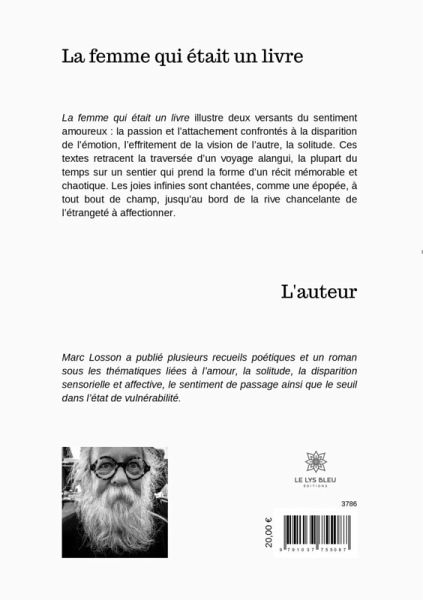 La femme qui était un livre illustre deux versants du sentiment amoureux : la passion et l¿attachement confrontés à la disparition de l¿émotion, l¿effritement de la vision de l¿autre, la solitude. Ces textes retracent la traversée d¿un voyage alangui, la plupart du temps sur un sentier qui prend la forme d¿un récit mémorable et chaotique. Les joies infinies sont chantées, comme une épopée, à tout bout de champ, jusqüau bord de la rive chancelante de l¿étrangeté à affectionner.