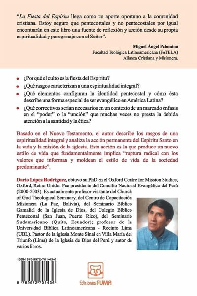 Basado en el Nuevo Testamento, el autor describe los rasgos de una espiritualidad integral y analiza la acción permanente del Espíritu Santo en la vida y la misión de la iglesia. Esta acción es la que produce un nuevo estilo de vida que fundamentalmente implica "ruptura radical con los valores que informan y moldean el estilo de vida de la sociedad predominante". ¿Por qué el culto es la fiesta del Espíritu? ¿Qué rasgos caracterizan a una espiritualidad integral? ¿Qué elementos configuran la identidad pentecostal y cómo ésta describe una forma especial de ser evangélico en América Latina? ¿Qué correctivos serían necesarios en un contexto de un marcado énfasis en el "poder" o la "unción" que muchas veces no presta la debida atención a la santidad y la ética?