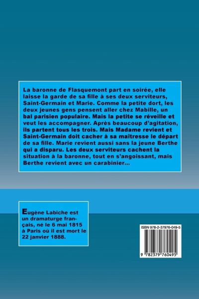 La baronne de Flasquemont part en soirée, elle laisse la garde de sa fille à ses deux serviteurs, Saint-Germain et Marie. Comme la petite dort, les deux jeunes gens pensent aller chez Mabille, un bal parisien populaire. Mais la petite se réveille et veut les accompagner. Après beaucoup d’agitation, ils partent tous les trois. Mais Madame revient et Saint-Germain doit cacher à sa maîtresse le départ de sa fille. Marie revient aussi sans la jeune Berthe qui a disparu. Les deux serviteurs cachent la situation à la baronne, tout en s’angoissant, mais Berthe revient avec un carabinier…