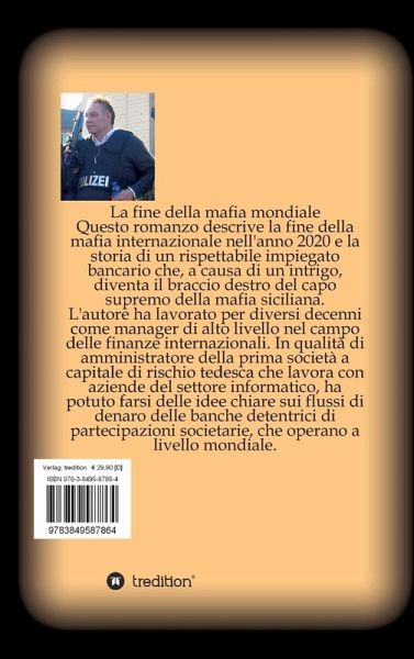 Durante il suo lavoro è entrato immancabilmente e quasi inevitabilmente a contatto con personalità equivoche. Infatti, è più che consigliabile non farsi coinvolgere personalmente in questa realtà sommersa. Nel corso degli anni, all'autore è venuta l'idea di scrivere un romanzo giallo sull'organizza-zione della mafia internazionale. Nella storia sarebbero potu-te confluire anche alcune sue esperienze nel mondo econo-mico. Il presente romanzo non intende essere una ricerca scientifica né una descrizione della realtà, ma solamente esprimere le impressioni dell'autore.