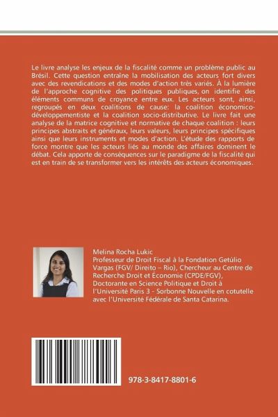 Le livre analyse les enjeux de la fiscalité comme un problème public au Brésil. Cette question entraîne la mobilisation des acteurs fort divers avec des revendications et des modes d action très variés. À la lumière de l approche cognitive des politiques publiques, on identifie des éléments communs de croyance entre eux. Les acteurs sont, ainsi, regroupés en deux coalitions de cause: la coalition économico-développementiste et la coalition socio-distributive. Le livre fait une analyse de la matrice cognitive et normative de chaque coalition : leurs principes abstraits et généraux, leurs valeurs, leurs principes spécifiques ainsi que leurs instruments et modes d action. L étude des rapports de force montre que les acteurs liés au monde des affaires dominent le débat. Cela apporte de conséquences sur le paradigme de la fiscalité qui est en train de se transformer vers les intérêts des acteurs économiques.