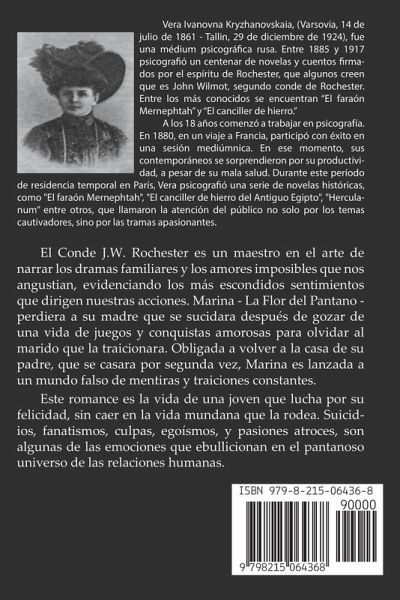 El Conde J.W. Rochester es un maestro en el arte de narrar los dramas familiares y los amores imposibles que nos angustian, evidenciando los más escondidos sentimientos que dirigen nuestras acciones. Marina - La Flor del Pantano - perdiera a su madre que se sucidara después de gozar de una vida de juegos y conquistas amorosas para olvidar al marido que la traicionara. Obligada a volver a la casa de su padre, que se casara por segunda vez, Marina es lanzada a un mundo falso de mentiras y traiciones constantes. Este romance es la vida de una joven que lucha por su felicidad, sin caer en la vida mundana que la rodea. Suicidios, fanatismos, culpas, egoísmos, y pasiones atroces, son algunas de las emociones que ebullicionan en el pantanoso universo de las relaciones humanas.
