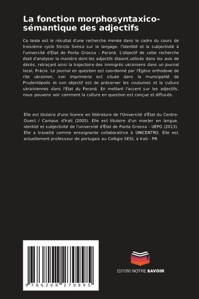 Ce texte est le résultat d'une recherche menée dans le cadre du cours de troisième cycle Stricto Senso sur le langage, l'identité et la subjectivité à l'université d'État de Ponta Grossa - Paraná. L'objectif de cette recherche était d'analyser la manière dont les adjectifs étaient utilisés dans les avis de décès, retraçant ainsi la trajectoire des immigrés ukrainiens dans un journal local, Prácia. Le journal en question est coordonné par l'Église orthodoxe de rite ukrainien, son imprimerie est située dans la municipalité de Prudentópolis et son objectif est de préserver les coutumes et la culture ukrainiennes dans l'État du Paraná. En mettant l'accent sur les adjectifs, nous pouvons voir comment la culture en question est conçue et diffusée.